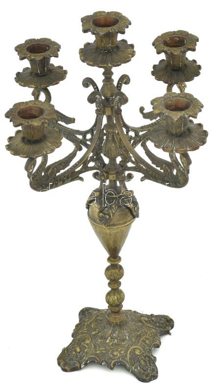 Ötágú gyertyatartó griff madarakkal Öntött réz 35 cm