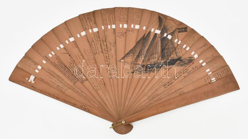 cca 1900 Szolgálati emlék festett fa legyező. Feltehetően tengerész sz... https://www.darabanth.com/en/463-Online-auction/463.0/Art-and-other-collectibles/Antique~1000011/cca-1900-Szolgalati-emlek-festett-fa-legyezo-Feltehetoen-tengeresz-szazados-reszere-klf-festett~II3090484