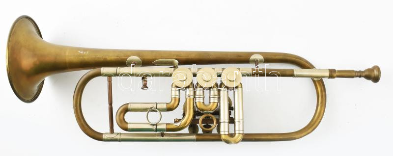 Trombita. Réz, jelzett, működik. 52 cm. Egyik billenytyűrugója hiányzik.