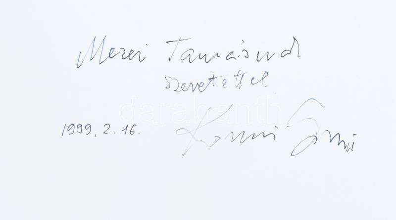 Description: Kornis György: György Kornis. (DEDIKÁLT). Szelényi László fotóival. Wien, é.n., magánkiadás. Gazdag képanyaggal, Kornis György munkáinak reprodukcióival illusztrálva. Német és angol nyelven. Kiadói egészvászon-kötés, kiadói papír védőborítóban, jó állapotban. Kornis György (1927-2011) festőművész által DEDIKÁLT példány.
