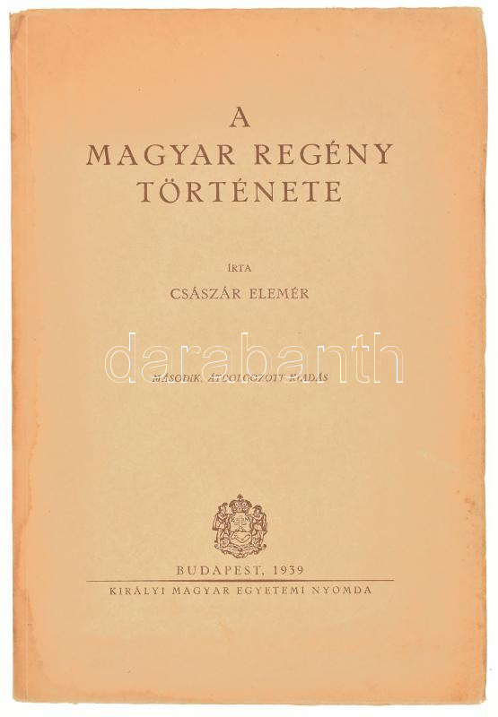 Császár Elemér: A magyar regény története. Budapest, 1939, Királyi Mag... https://www.darabanth.com/en/463-Online-auction/463.0/Books/Books-Other-rarities~2000017/Csaszar-Elemer-A-magyar-regeny-tortenete-Budapest-1939-Kiralyi-Magyar-Egyetemi-Nyomda~II3117530