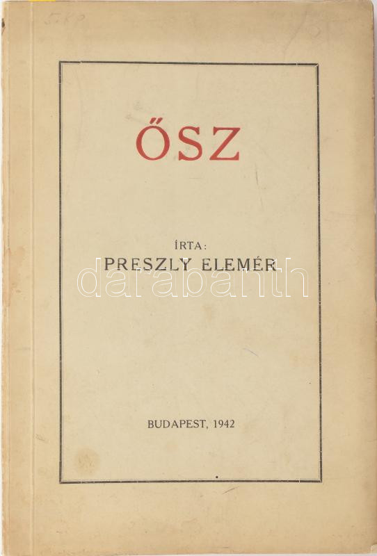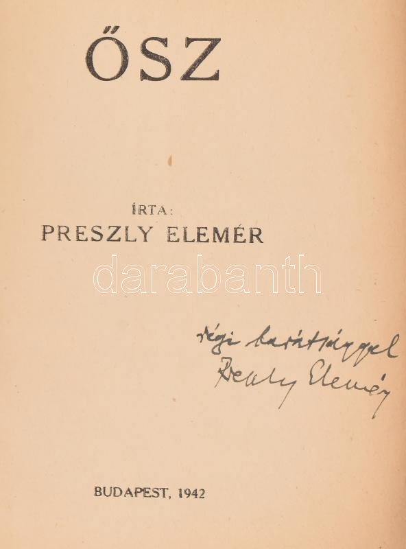 https://www.darabanth.com/en/463-Online-auction/463.0/Books/Books-Other-rarities~2000017/Preszly-Elemer-Osz-DEDIKALTBp-1942-Vac-Pestvideki-Nyomda-186-p-Kiadoi-papirkotes~II3116836
