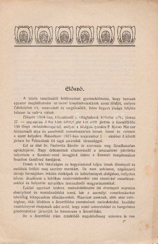 Tóth Kálmán: A Szentföld és a Szentírás. Palesztinai élmények és bibliai emlékek. Esztergom 1928. Laiszky János ny. 292 p. Egyetlen kiadás. Oldalszámozáson belül számos szövegközti és egész oldalas fényképpel, rajzzal illusztrált, néprajzi megfigyelésekben és nemzetkarakterológiai megjegyzésekben gazdag útleírás. A közel-keleti útra 1927 szeptemberében került sor, az utolsó oldalakon a zarándoklat szereplőinek névsora és csoportképe. A címoldalon régi tulajdonosi bejegyzés, példányunk fűzése kissé laza, lapszélei enyhén gyűröttek, töredezettek. Fűzve, illusztrált, kissé sérült kiadói borítóban.