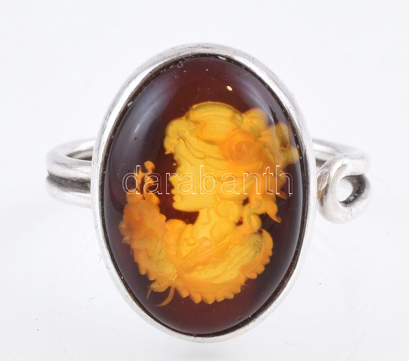 Ezüst (Ag) kámeás gyűrű, jelzett, méret: állítható, bruttó: 4,8 g