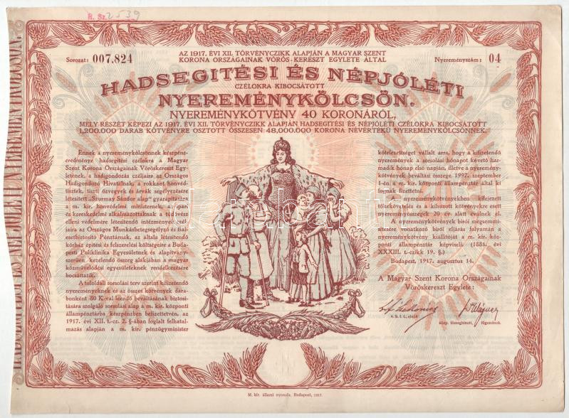https://www.darabanth.com/en/463-Online-auction/463.0/Numismatics/Shares-and-Tickets~500005/Budapest-1917-Hadsegitesi-es-Nepjoleti-nyeremenykolcson-nyeremenykotveny-40K-rol-~II3074602