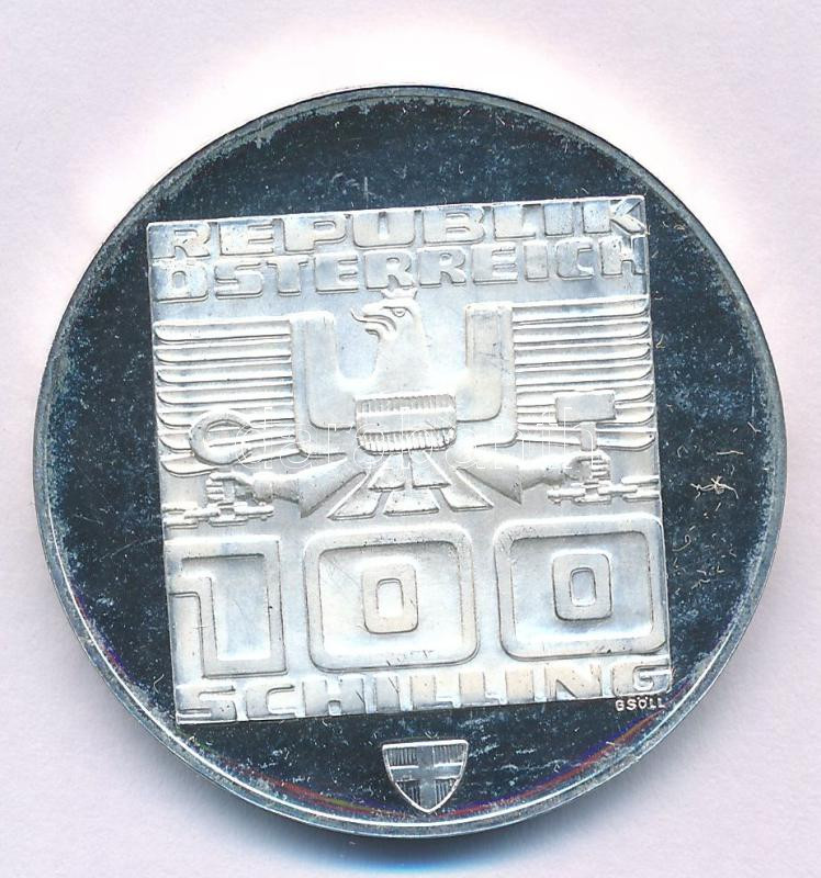 Description: Ausztria 1976. 100Sch Ag "Téli Olimpia Innsbruck" T:AU (PP) Austria 1976. 100 Schilling "Winter Olympics Innsbruck / Building and Olympic logo" C:AU (PP) Krause KM#2927