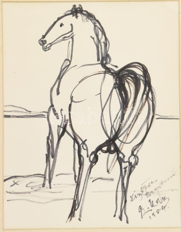 Olvashatatlan jelzéssel: Ló a vízparton, 1984. Filctoll, papír. Kiss D... https://www.darabanth.com/en/463-Online-auction/463.0/Paintings-and-graphics/Paintings-and-graphics-quot-signedquot-or-quot-without-signquot-~1000026/Olvashatatlan-jelzessel-Lo-a-vizparton-1984-Filctoll-papir-Kiss-Denes-1936-2013-Jozsef-~II3095782