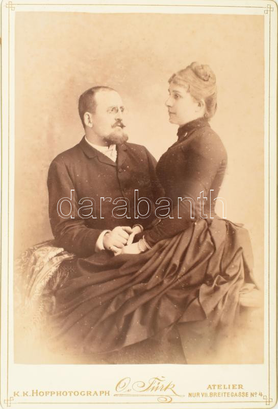 cca 1900 Elegáns házaspár portréja, keményhátú fotó Othmar v. Türk béc...