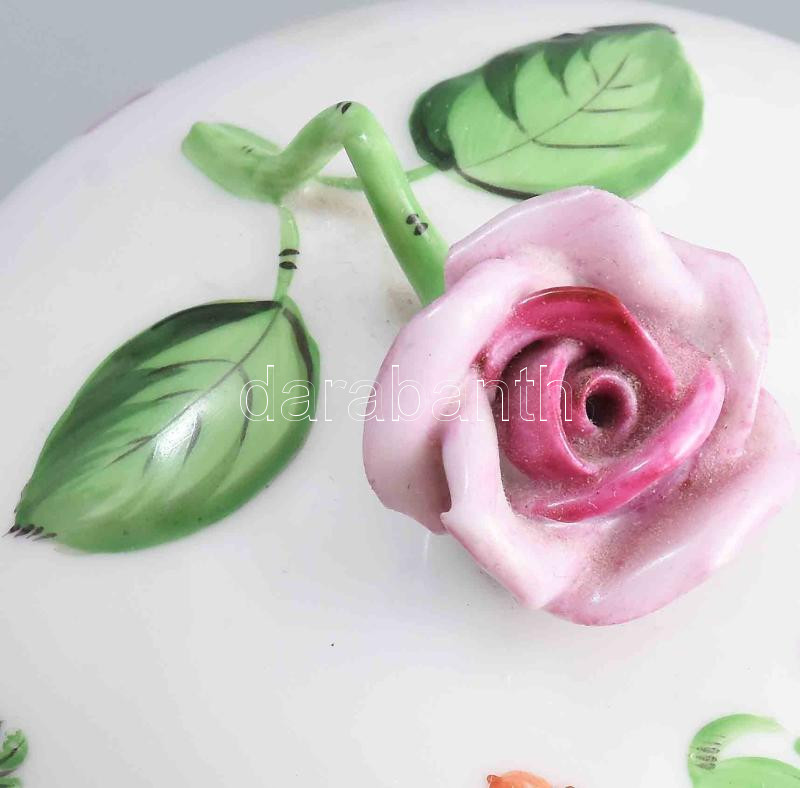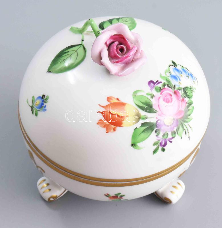 Herendi virág mintás bonbonniere. Kézzel festett, jelzett, hibátlan d:...
