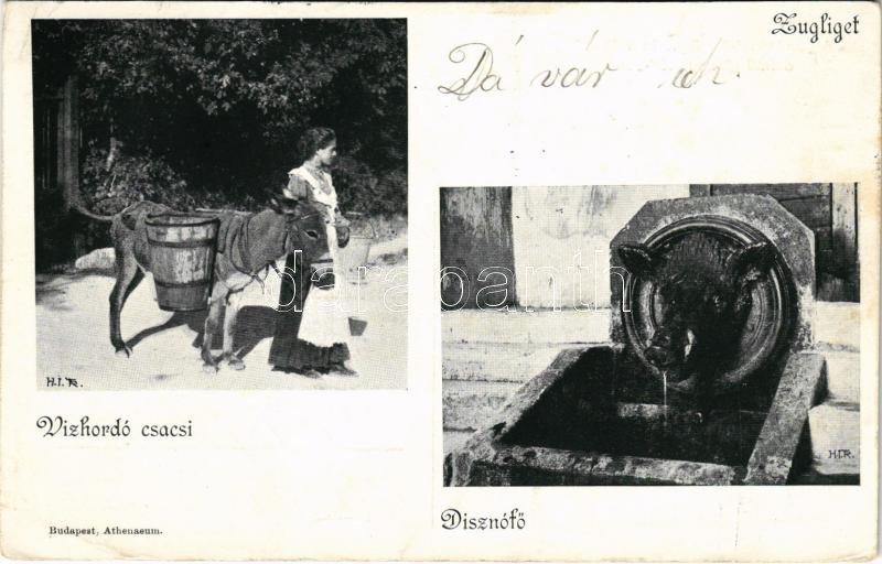 1907 Budapest XII. Zugliget, Vízhordó csacsi, Disznófő. A "Budapest-Zu...