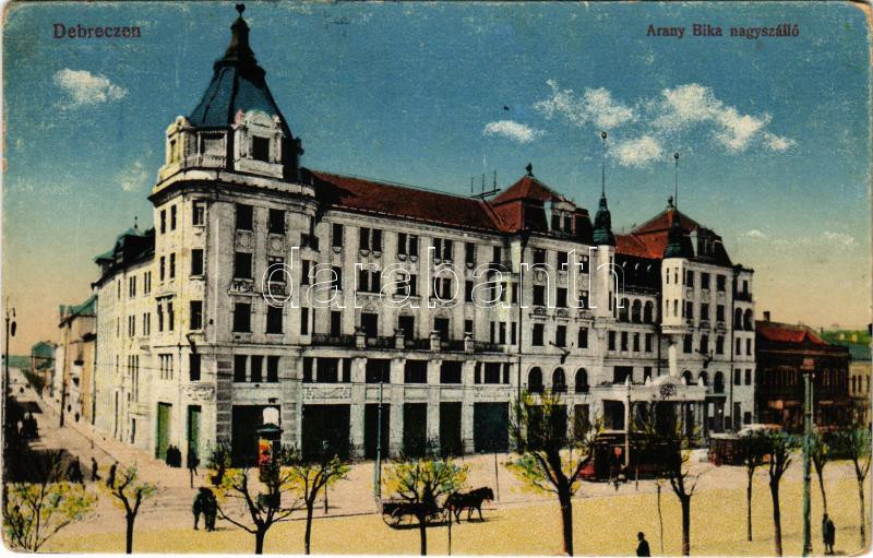 1918 Debrecen, Arany Bika szálloda, villamos (kopott sarkak / worn corners)