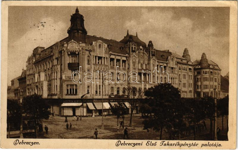https://www.darabanth.com/en/463-Online-auction/463.0/Postcards/Hungary~1500006/1926-Debrecen-Elso-Takarekpenztar-palota-Kontsek-Kornel-uzlete-EK~II3116560