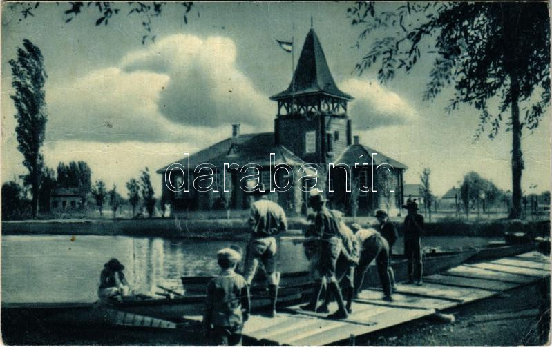 1937 Debrecen, Cserkészház, Cserkészpark Csónakázótó. Kassay Ernő 978/8. cserkész pályanyertes felvétele, Csáthy rt. kiadása (EK)
