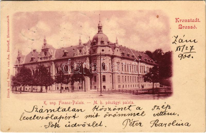 1900 Brassó, Kronstadt, Brasov; M. kir. pénzügyi palota. Jos. Drotleff...