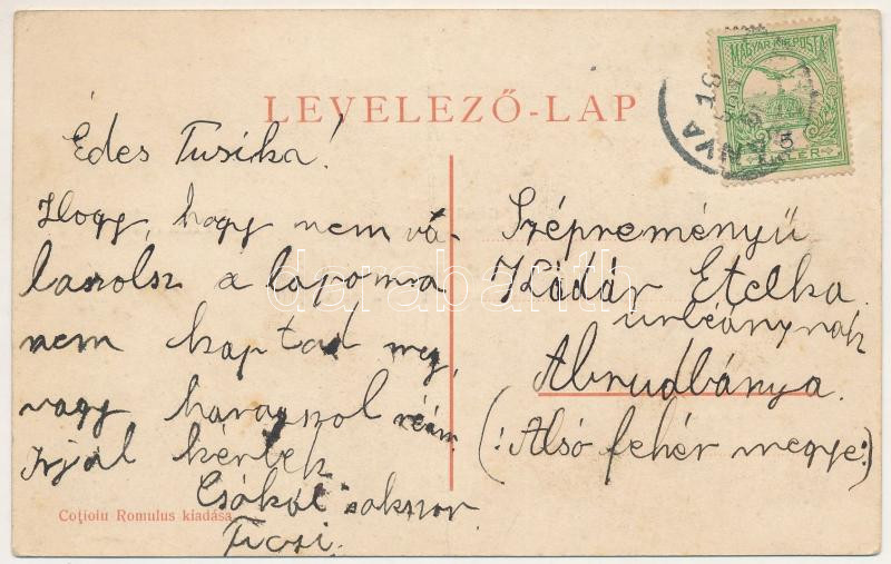 1910 Körösbánya, Kőrösbánya, Altenburg, Baia de Cris; Piactér, Gainai vásár, Vasútállomás, Cebei ortodox templom. Cotioiu Romulus kiadása / Tergul dela Gaina, Gara calei Ferate, Biserica din Cebea / market square, fair in Gaina, railway station Romanian Orthodox church in Tebea (fa)