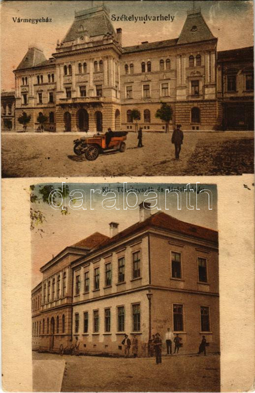 1925 Székelyudvarhely, Odorheiu Secuiesc; Vármegyeház, Kir. Törvényszék és Járásbíróság / county hall, courts, automobile (EK)