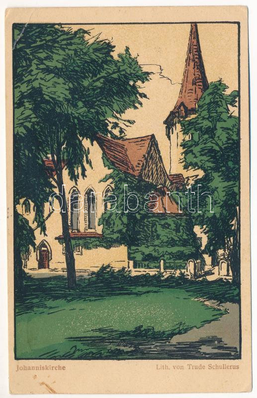 1930 Nagyszeben, Hermannstadt, Sibiu; Johanniskirche / Evangélikus templom / Lutheran church. litho s: Trude Schullerus (EB)