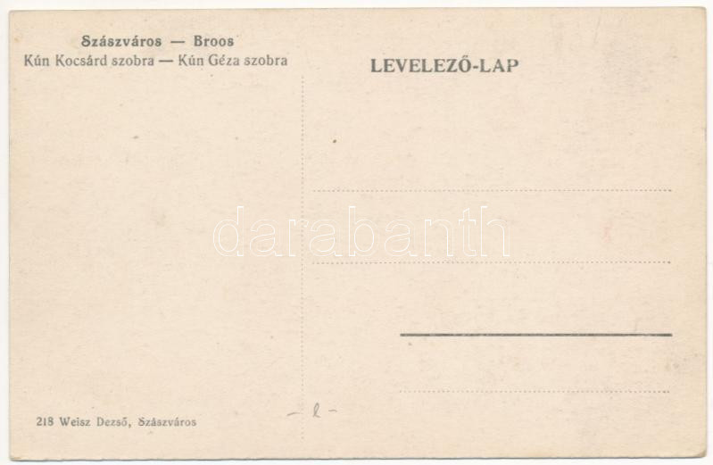 https://www.darabanth.com/en/463-Online-auction/463.0/Postcards/Transylvania~1500007/Szaszvaros-Broos-Orastie-Kun-Kocsard-es-Kuun-Geza-szobra-Weisz-Dezso-kiadasa-statues~II3118172