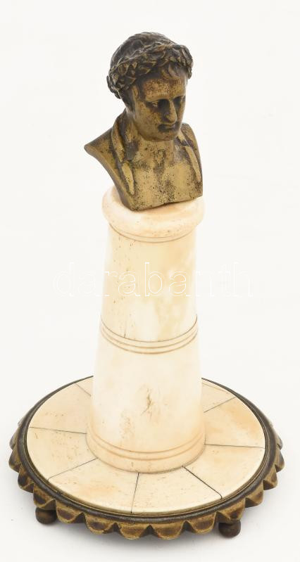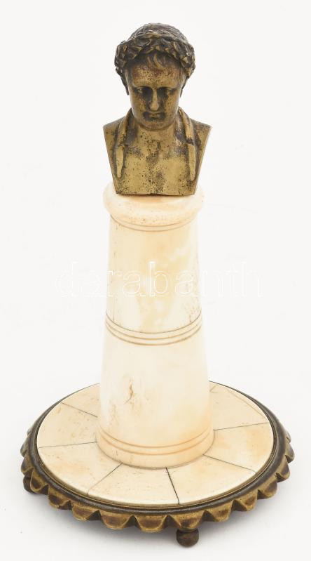 Antik Napóleon réz büszt, csont posztamens és talapzat résszel, 4 gömb...