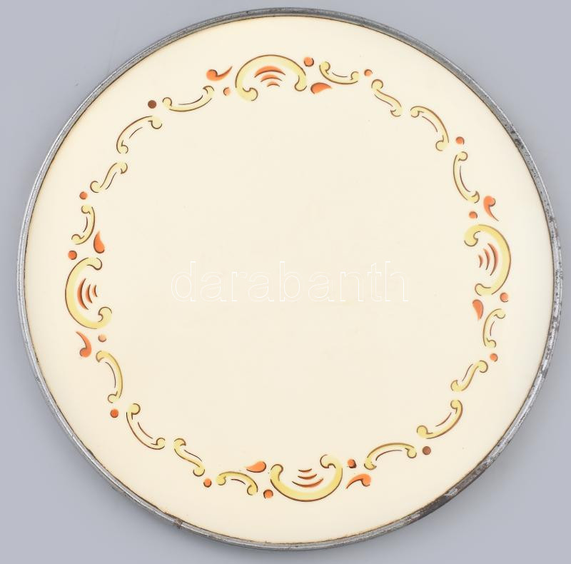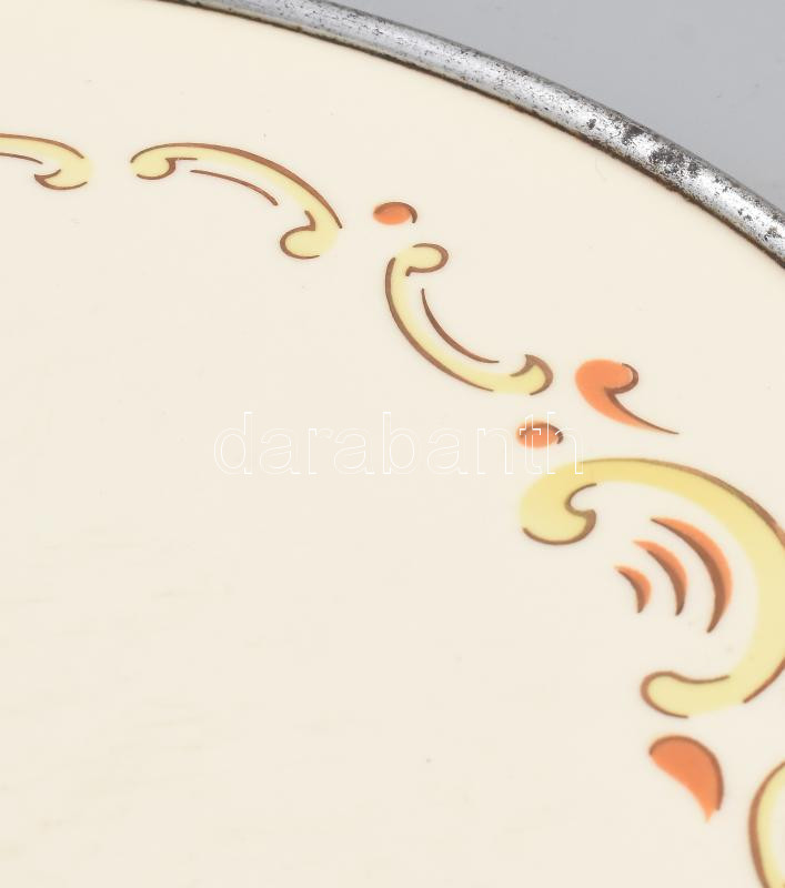 cca 1940 Art deco fajansz betétes tortatálca, sérüléssel, hiánnyal, d:...