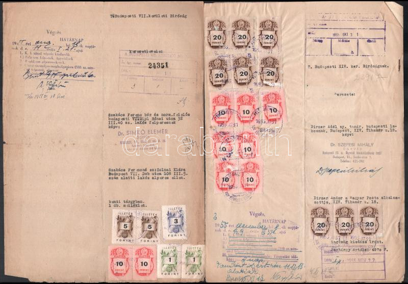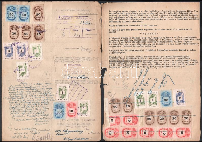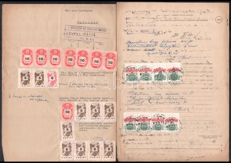 1945 utáni időszakból 57 db okmány illetékbélyegekkel, benne érdekessé...
