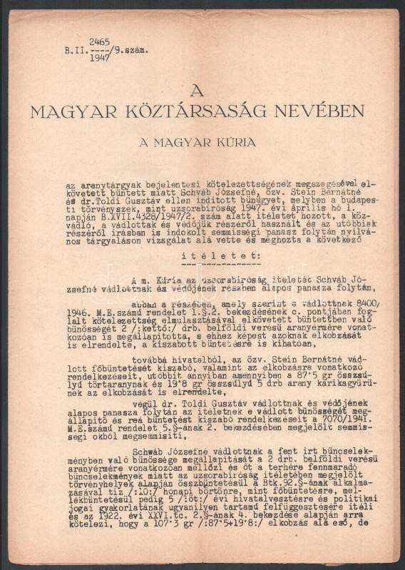 https://www.darabanth.com/en/464-Online-auction/464.0/Art-and-other-collectibles/Documents~1000020/1947-Kuriai-birosagi-itelet-arany-targyakkal-alo-visszaeles-okan~II3126182
