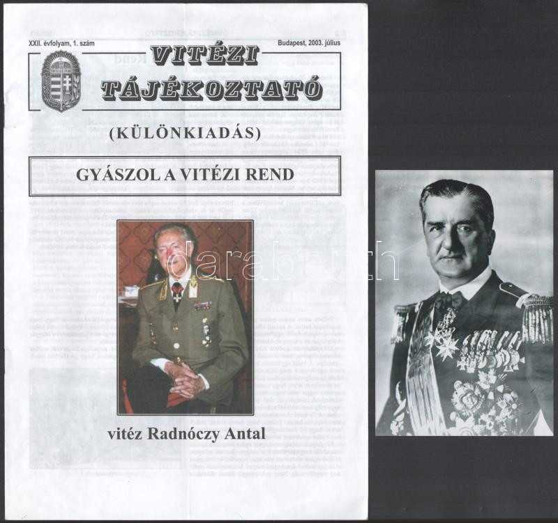 Description: 2003 Vitézi tájékoztató XXII. évf. 1. sz., Budapest, 2003. július, különkiadás, vitéz Radnóczy Antal gyászszáma + Horthy Miklós portréja, modern előhívás, 15x10 cm