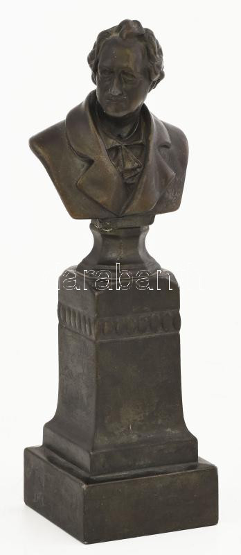 Goethe büszt talapzaton szobor. Ón, kis kopással, m: 17 cm