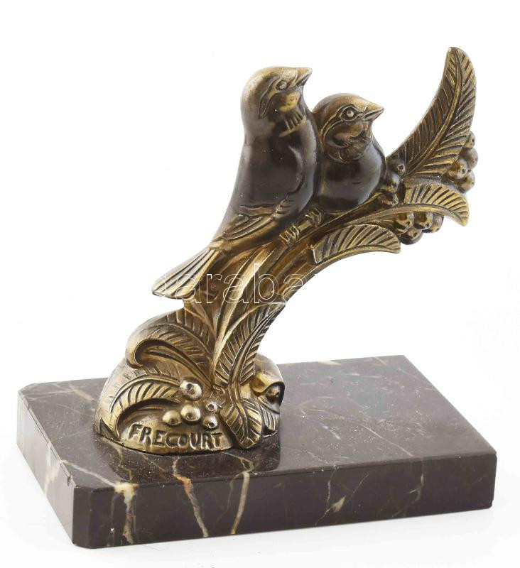 Maurice Frecourt madárpár asztaldísz. Réz, márvány talapzaton, m: 13 c...