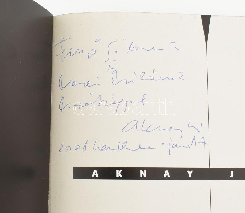 Aknay János. A művész, Aknay János által DEDIKÁLT példány! Szerk.: Novotny Tihamér. Szentendre, 2000, Vajda Lajos Stúdió Kulturális Egyesület. 216p. Példányszám: 1000. Aknay János műveinek reprodukcióival gazdagon illusztrált. Kiadói papírkötés, karcos borítóval.
