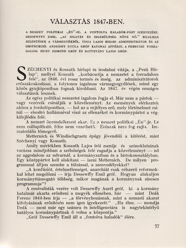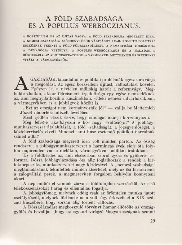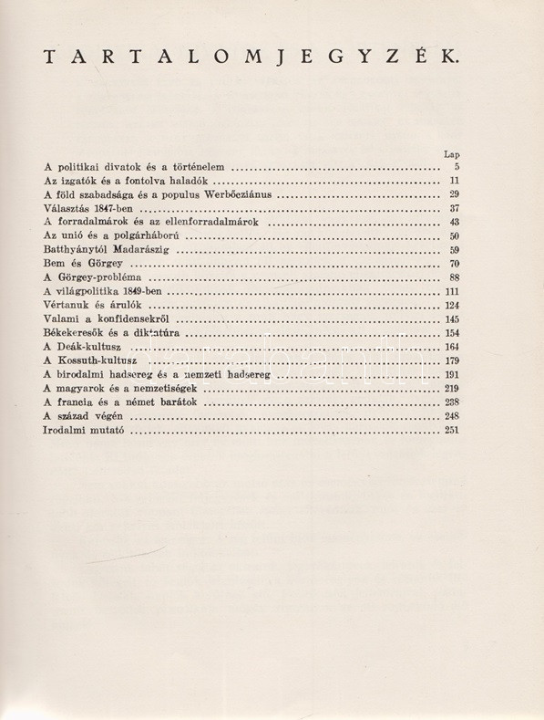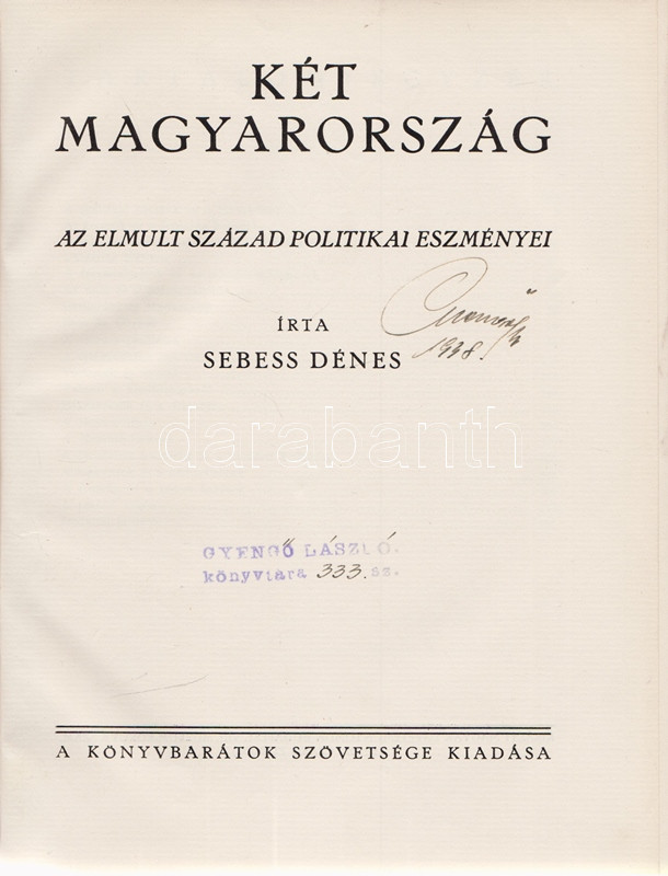Az erdélyi születésű, függetlenségi párti politikus Sebess Dénes (1869-1945) olvasmányos stílusban tárgyalja a magyar politika eredendő kettősségét, ellentéteken alapuló jellegét, 1848 és 1867 kettős megítélését. A munka a Monarchia bukását elsősorban a belső széthúzásban jelöli meg, de vizsgálódásába bevonja a külföld geopolitikai törekvéseit is. Elfogulatlanságra törekvő áttekintés. A címoldalon régi tulajdonosi bejegyzés és bélyegzés.