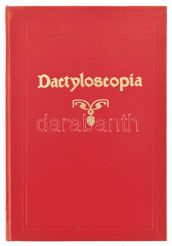 Description: Gábor Béla - H. Arányi Taksony: Dactyloscopia. A személy kilétének megállapítása az ujjak lenyomatai alapján. Bírák, ügyészek, rendőrhatóságok, csendőrség, fegyintézetek részére. hn., én., nyn. Az 1905-ös reprint kiadás. Kiadói aranyozott műbőr-kötés, 494. számú számozott példány.