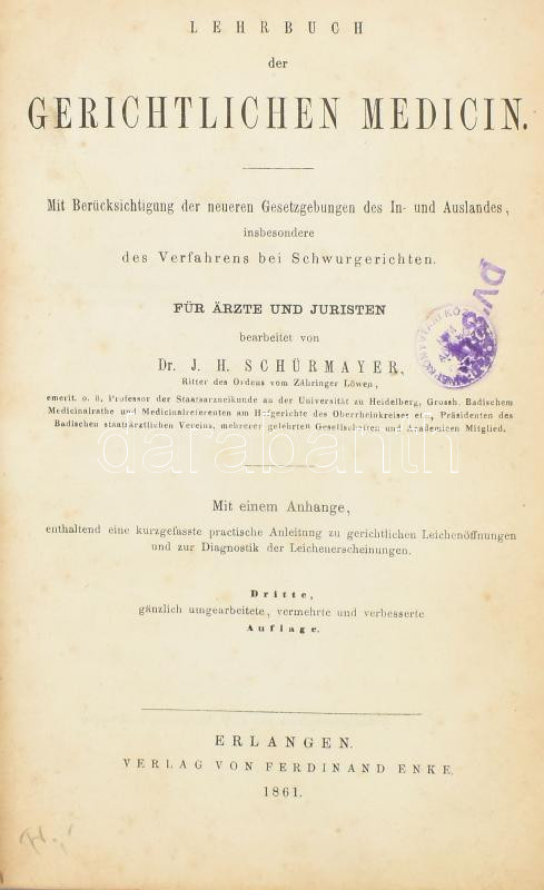 J. H. Schürmayer: Lehrbuch der gerichtlichen Medizin. Für Ärzte und Ju... https://www.darabanth.com/en/464-Online-auction/464.0/Books/Books-Natural-sciences-Medicine~2000088/J-H-Schurmayer-Lehrbuch-der-gerichtlichen-Medizin-Fur-Arzte-und-Juristen-Bearbeitet-von-Dr-~II3129607