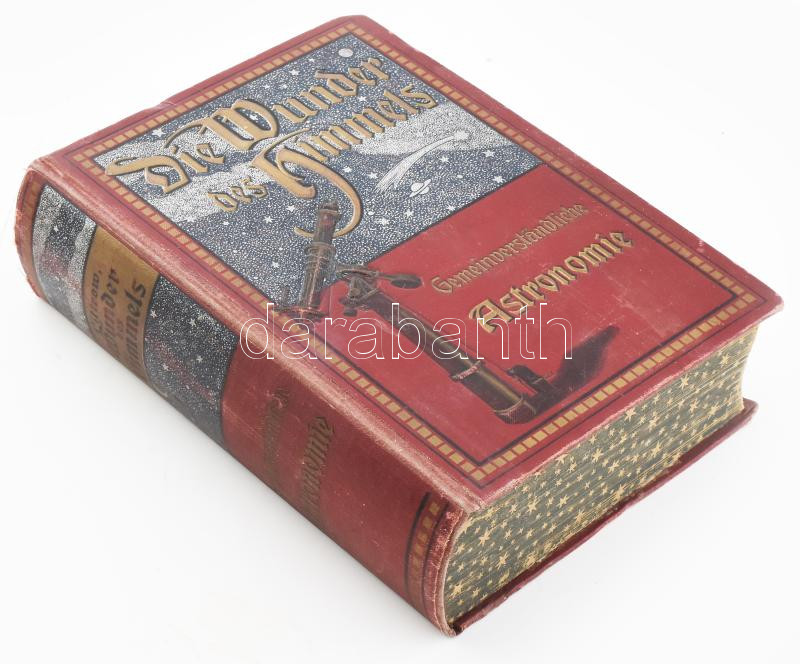 Littrow, [Joseph Johann von]: Die Wunder des Himmels. Gemeinverständliche Darstellung des Weltsystems. Gemäß dem jetzigen Stande der Wissenschaft neubearbeitet von Dr. Paul Guthnick. Berlin, 1910, W. Herlet. Gazdag szövegközi és egészoldalas képanyaggal. Német nyelven. Kiadói aranyozott, dombornyomott, festett egészvászon-kötés, kissé kopott borítóval, intézményi bélyegzőkkel, néhány lapot és képtáblát kitéptek.