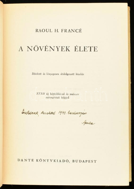 https://www.darabanth.com/en/464-Online-auction/464.0/Books/Books-Natural-sciences-Medicine~2000088/Raoul-H-France-A-novenyek-elete-Forditotta-Lambrecht-Kalman-Bp-1942-Dante-Kiadoi-felvaszon~II3126501