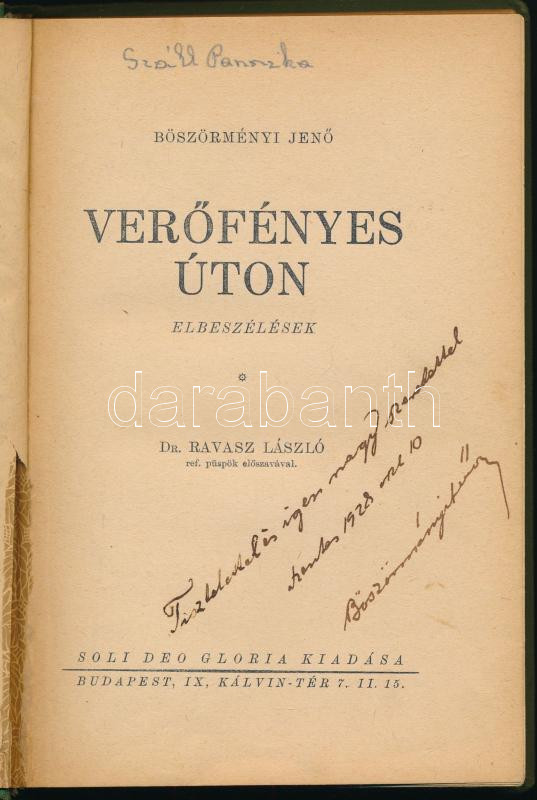 Böszörményi Jenő: Verőfényes úton. Elbeszélések. DEDIKÁLT példány! Rav... https://www.darabanth.com/en/464-Online-auction/464.0/Books/Books-Other-rarities~1500033/Boszormenyi-Jeno-Verofenyes-uton-Elbeszelesek-DEDIKALT-peldany-Ravasz-Laszlo-eloszavaval~II3105705
