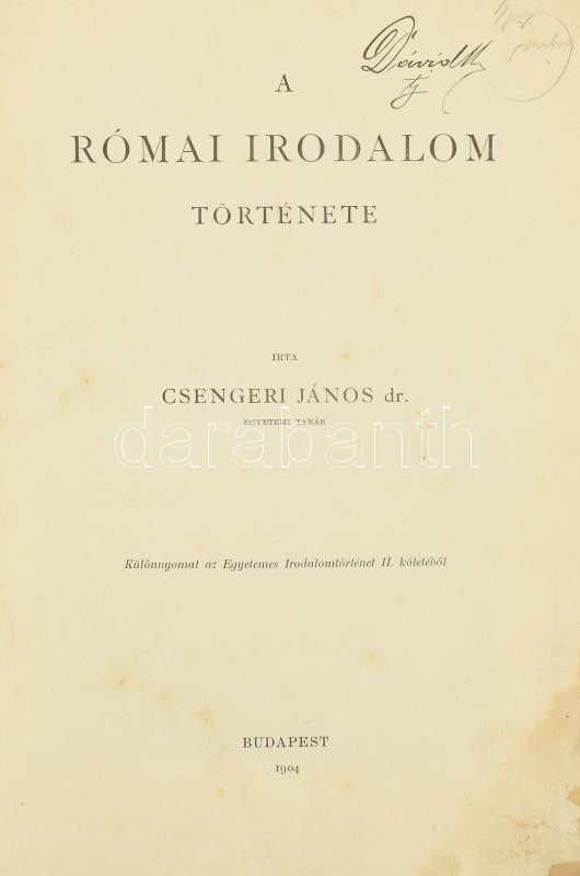 A római irodalom története. (Különnyomat az Egyetemes... https://www.darabanth.com/en/464-Online-auction/464.0/Books/Books-Other-rarities~1500033/Csengeri-Janos-A-romai-irodalom-tortenete-Kulonnyomat-az-Egyetemes-Irodalomtortenet-II~II3130279
