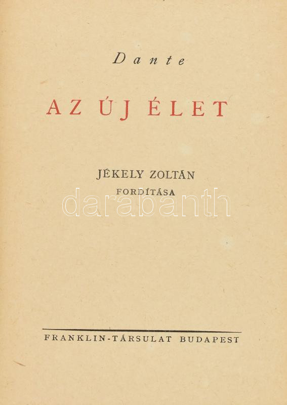 Dante Alighieri: Az új élet. La vita nuova. Kétnyelvű remekművek I. Jé... https://www.darabanth.com/en/464-Online-auction/464.0/Books/Books-Other-rarities~1500033/Dante-Alighieri-Az-uj-elet-La-vita-nuova-Ketnyelvu-remekmuvek-I-Jekely-Zoltan-forditasa-A~II3105594