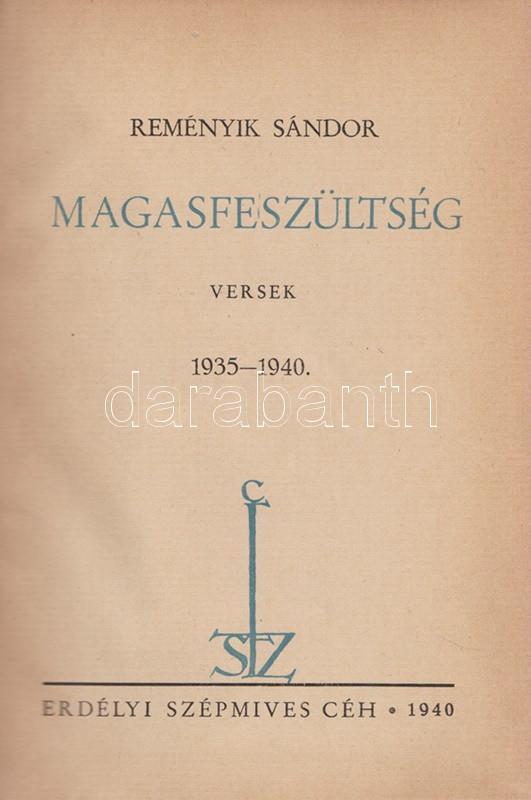 (Kolozsvár),... https://www.darabanth.com/en/464-Online-auction/464.0/Books/Books-Other-rarities~1500033/Remenyik-Sandor-Magasfeszultseg-Versek-1935-1940Kolozsvar-1940-Erdelyi-Szepmives-Ceh~II3122455