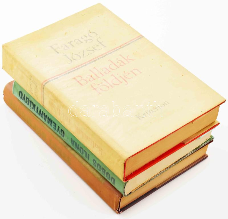 Vegyes könyvtétel, 3 db: Széki népmesék. Gyűjtötte, sajtó alá rendezte és a bevezető tanulmányt írta: Nagy Olga. A mesék jegyzetanyagát összeállította: Nagy Olga. Bukarest, 1976., Kriterion. A borítón Korniss Péter fotójával. Kiadói egészvászon-kötés, kiadói illusztrált papír védőborítóban.; Dobos Ilona: Gyémántkígyó. Ordódy József és Kovács Károly meséi. Bp.,1981.,Szépirodalmi. Papp György illusztrációival. Kiadói egészvászon-kötés, kiadói illusztrált papír védőborítóban.; Faragó József: Balladák földjén. Válogatott tanulmányok, cikkek. Bukarest, 1977, Kriterion. Kiadói egészvászon-kötés, kiadói illusztrált papír védőborítóban.;