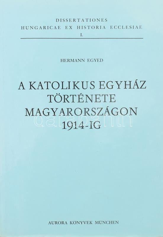 Hermann Egyed: A katolikus egyház története Magyarországon 1914-ig. Dissertationes Hungaricae ex historia Ecclesiae I. München, 1973, Aurora Könyvek. Második, javÃtott kiadás. Emigráns kiadás. Kiadói papÃrkötés.