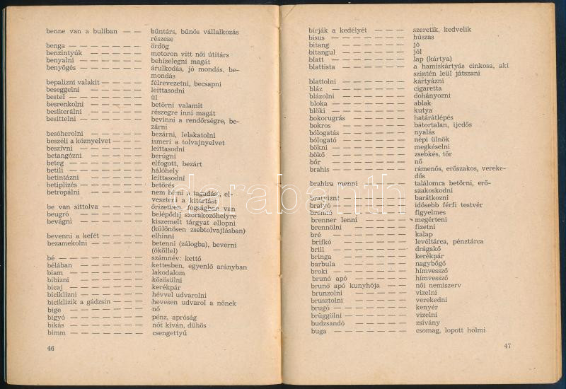 Kiss Károly: A mai magyar tolvajnyelv. Kriminalisztikai sorozat 18. Bp... https://www.darabanth.com/en/464-Online-auction/464.0/Books/Books-Social-sciences~1500025/Kiss-Karoly-A-mai-magyar-tolvajnyelv-Kriminalisztikai-sorozat-18-Bp-1963-BM-Tanulmanyi-es~II3129601