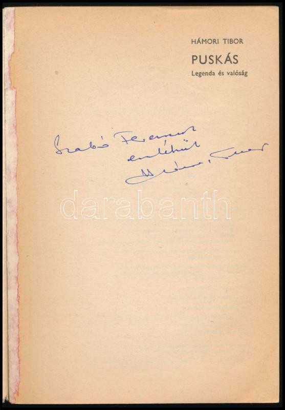 Hámori Tibor: Puskás. Legenda és valóság. A szerző által DEDIKÁLT péld... https://www.darabanth.com/en/464-Online-auction/464.0/Books/Books-Sports-Chess-Alpinism~1500016/Hamori-Tibor-Puskas-Legenda-es-valosag-A-szerzo-altal-DEDIKALT-peldany-Bp-1982-~II3129491