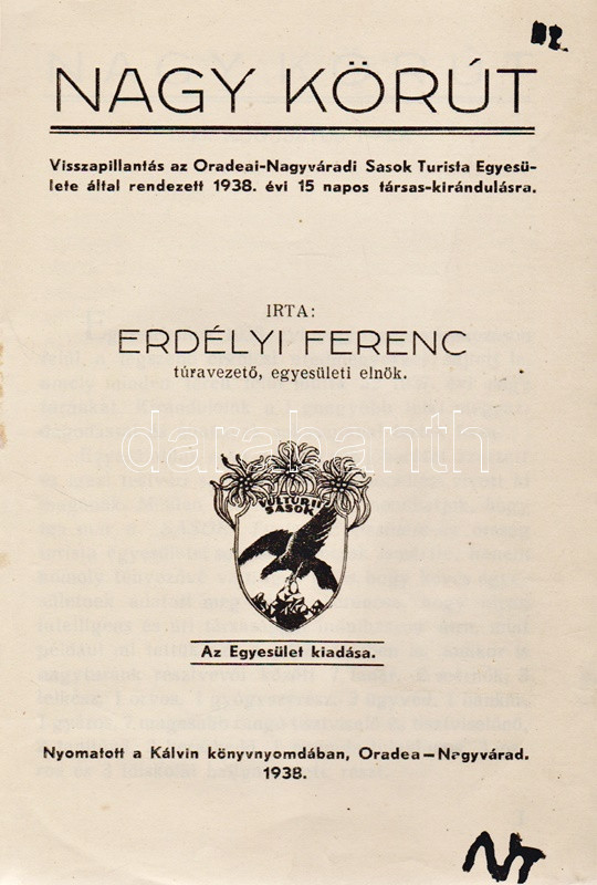 A kiadvány a nagyváradi ,,Sasok" Turista Egylet 1938. augusztus 7. és 21. közötti erdélyi utazásának állít emléket. Részlet az előszóból: ,,Minden dicséret nélkül mondhatjuk, hogy ma már a >>Sasok