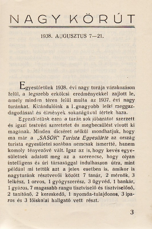 Nagy körút. Visszapillantás az Oradeai-Nagyváradi Sasok Turista Egyesülete által rendezett 1938. évi 15 napos társas-kirándulásra.