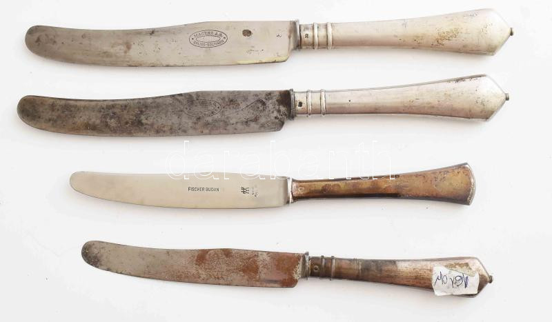 4 db klf ezüst (Ag) nyelű kés Jelzett, Dianás jelzéssel.