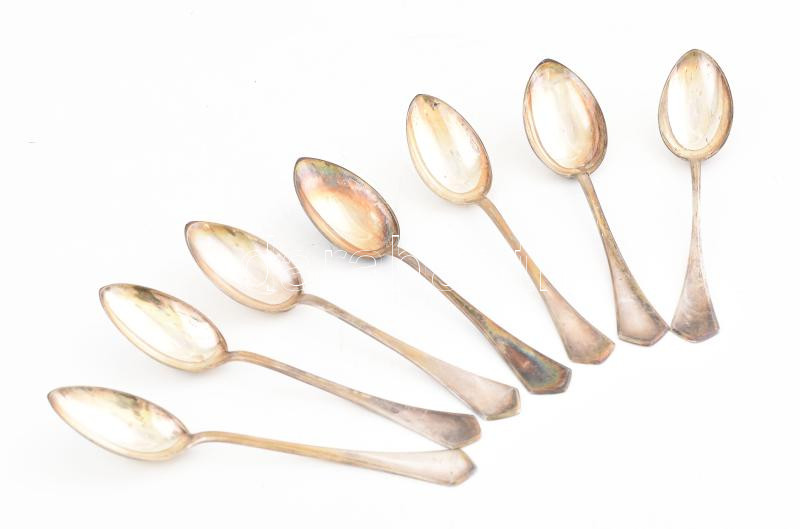 6 db ezüst teás kanál, jelzett Dianás jelzéssel, mesterjeggyel 179 g
