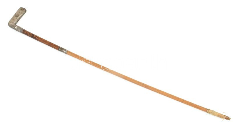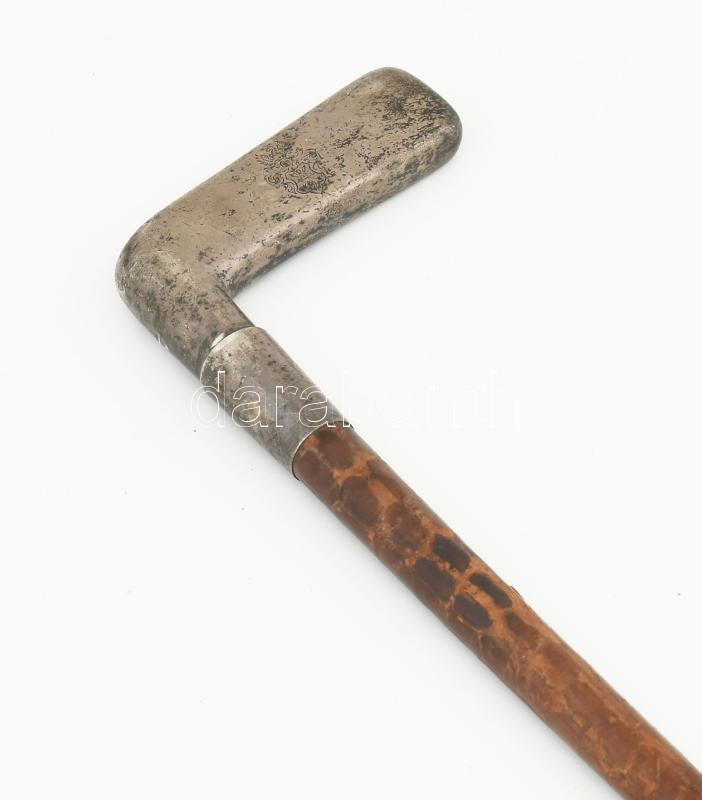 Feldsberg Budapest antik lovaglópálca, ezüst (Ag) fejjel, címeres, jelzett, vége hiányos, h: 73 cm