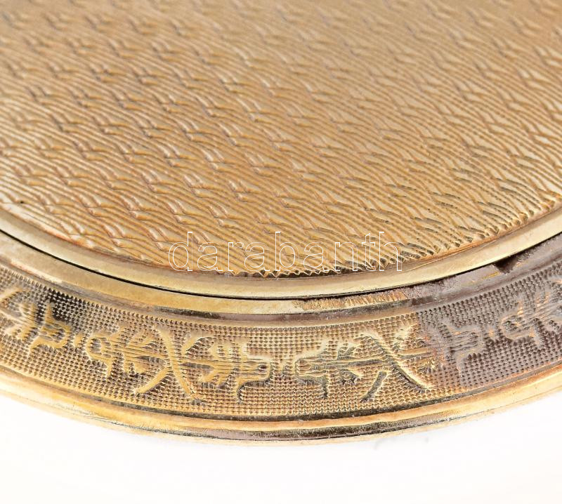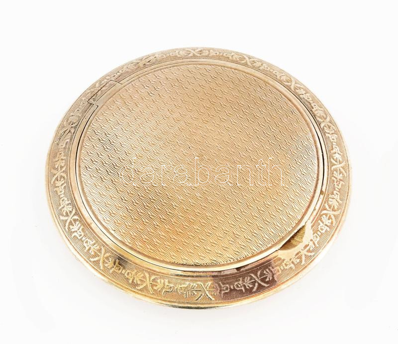 Pudrié, 14K arany, antik, jelzett,. mesterjegyes geometrikus és gilosált díszítéssel. nettó 18,6 g, d: 4,5 cm