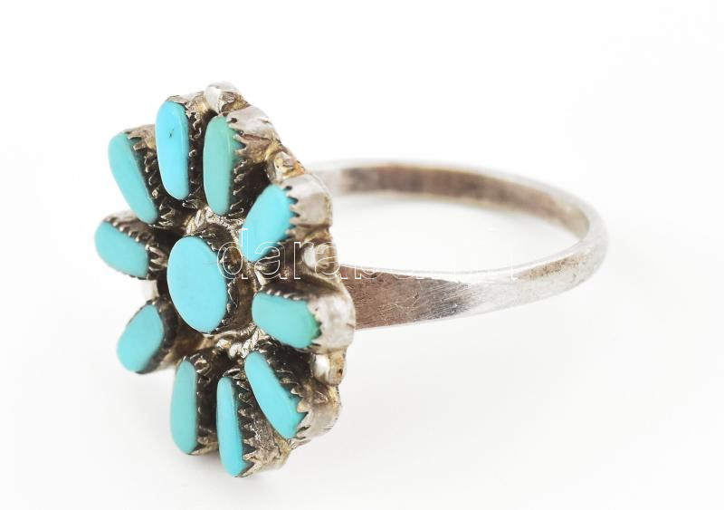 Zuni ezüst(Ag) gyűrű türkizzel, jelzés nélkül, méret: 55, bruttó: 2,6 ...